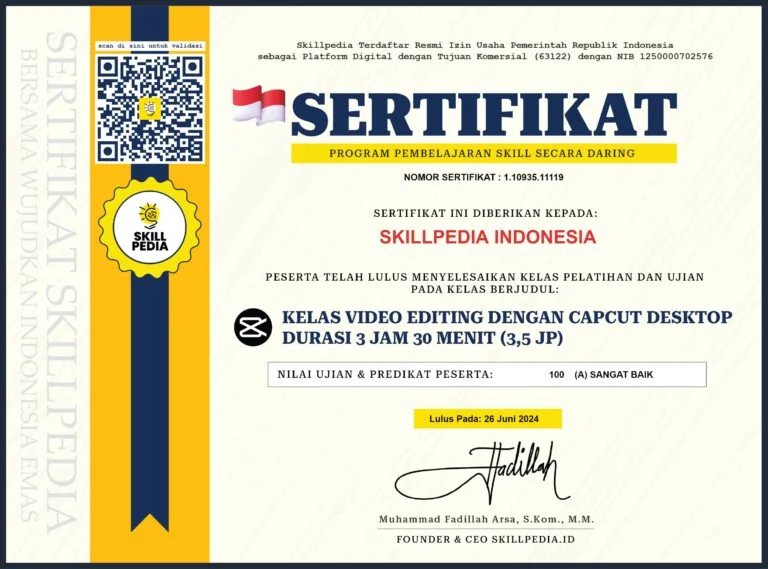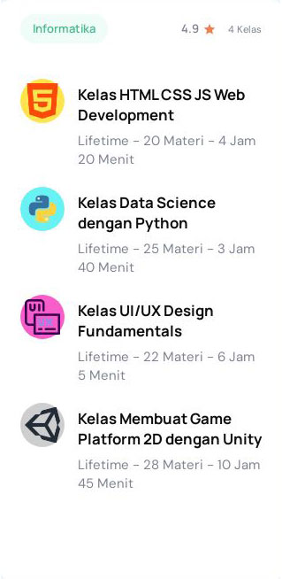 Belajar Skill Online #1 terlengkap termurahSatu Kali Bayar Dapat Semua Hanya 35 Ribu Langsung Beli Member 0 + Kelas 0 + Video Materi 0 + Kenapa Kamu Wajib Belajar Disini? Lifetime Access Kelas Berkualitas Setiap kelas di Skillpedia memiliki seminimalnya 20 materi. Kurikulum sesuai kebutuhan industri. Sertifikat Kursus Disertai Nilai & JP Desain sertifikat kami memiliki informasi lengkap seperti nilai dan jam pelajaran. Akses ke Grup Komunitas Gabunglah untuk merasakan ekosistem belajar daring yang menyenangkan. Perbanyak teman, perluas jaringan. Kamu Bisa Akses Semua Kelas Di Bawah Ini! Lifetime, Free Update, Sekali Bayar! Bonus Ebook Tengok Sedikit Biar Tertarik Suka banyak yang tanya nih gimana halaman belajarnya, gimana desain sertifikatnya, apa bener ada grupnya. Nih kami kasih liat… Ada Sertifikat setiap kelas Jadi Anda akan mendapatkan 46+ Sertifikat Cukup Berinvestasi Rp 35 Ribu Anda Bisa Mendapatkan Semua Kelas Dan Akses Seumur Hidup Free Update Jika Ada Penambahan Kelas! Beli Sekarang